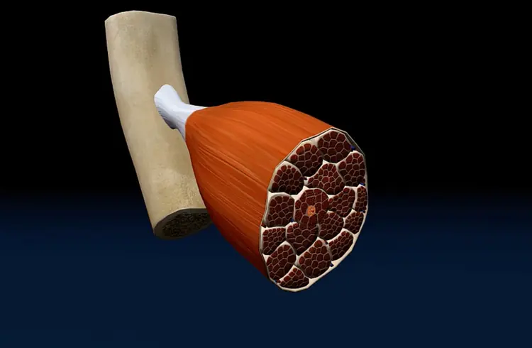 Jeder Muskel setzt sich aus sich aus vielen Muskelfaserbündeln zusammen. Diese Fasern sind in den Muskelfaserbündeln parallel zueinander verlaufend angeordnet.