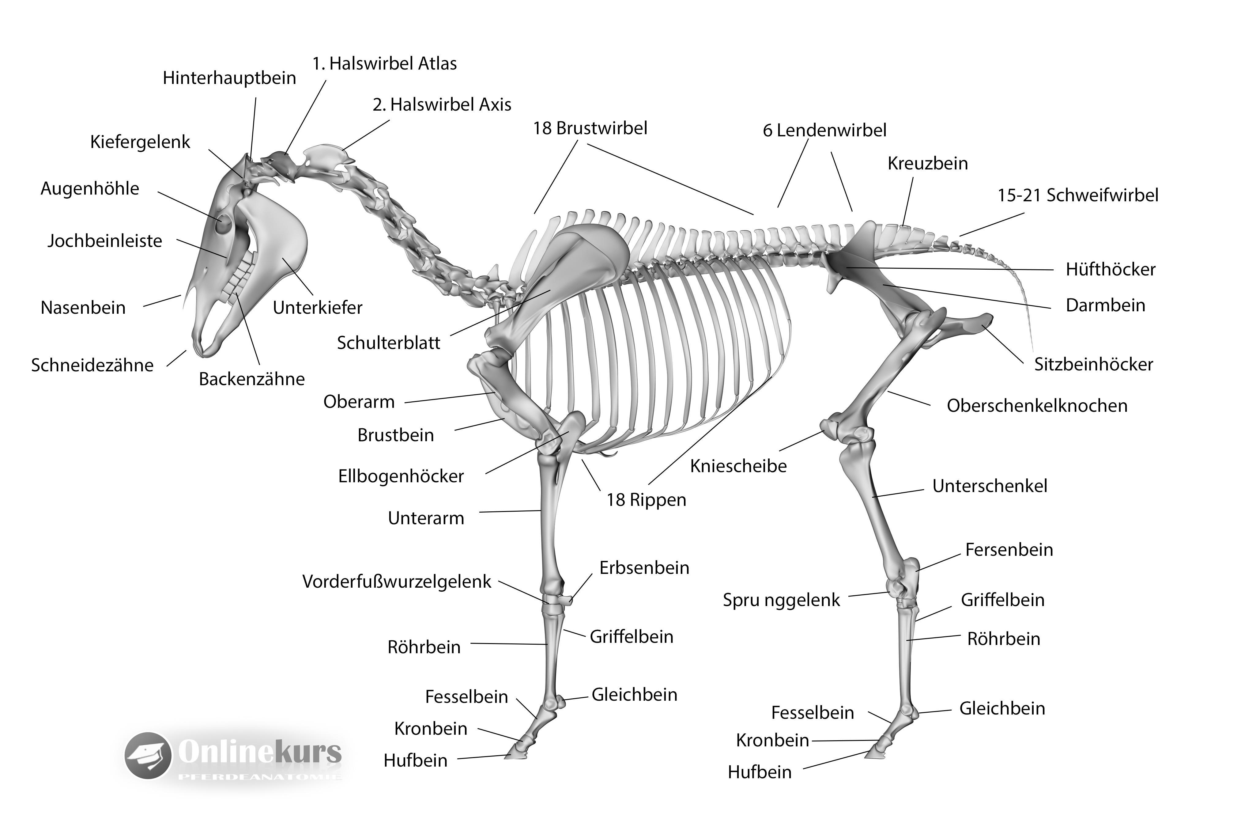 Übrigens variiert die Anzahl der Knochen eines Pferdes, je nach Entwicklung, Rasse und Alter des Pferdes.